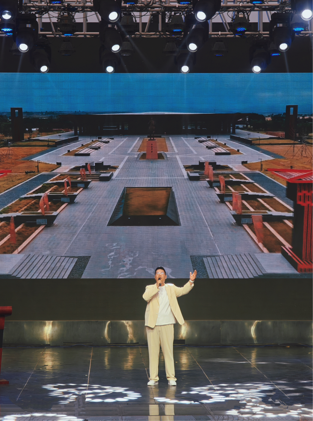 作为曹操高陵主题曲,《曹操往事越千年博物馆》巧妙融合汉魏历史脉络与古典诗词意境。歌词中“往事越千年,魏武挥鞭”等点睛之笔,精准呼应博物馆“展现汉末风云” 的展陈主题。演出现场,舞台背景同步播放曹操高陵出土文物影像与动态历史场景,配合灯光变幻与多媒体特效,打造出“人在画中唱,史在景中现”的沉浸式体验,让观众穿越千年时光,直观感受古都安阳的厚重文化底蕴。
